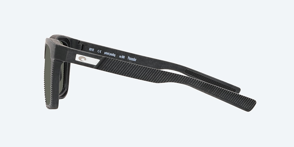 Returning to the waters where they were born, the square design of the Costa Polarized Pescador larger sized frame will bring out the fisherman in you. Worn with or without removable side shields for more coverage, the classic styling performs on or off the water. The Pescador is marked by a unique tumbled finish and includes textured detailing on the outer temples and interior rubber temple grips for comfort + performance. These frames are designed to be fully recyclable, providing an end of life solution.